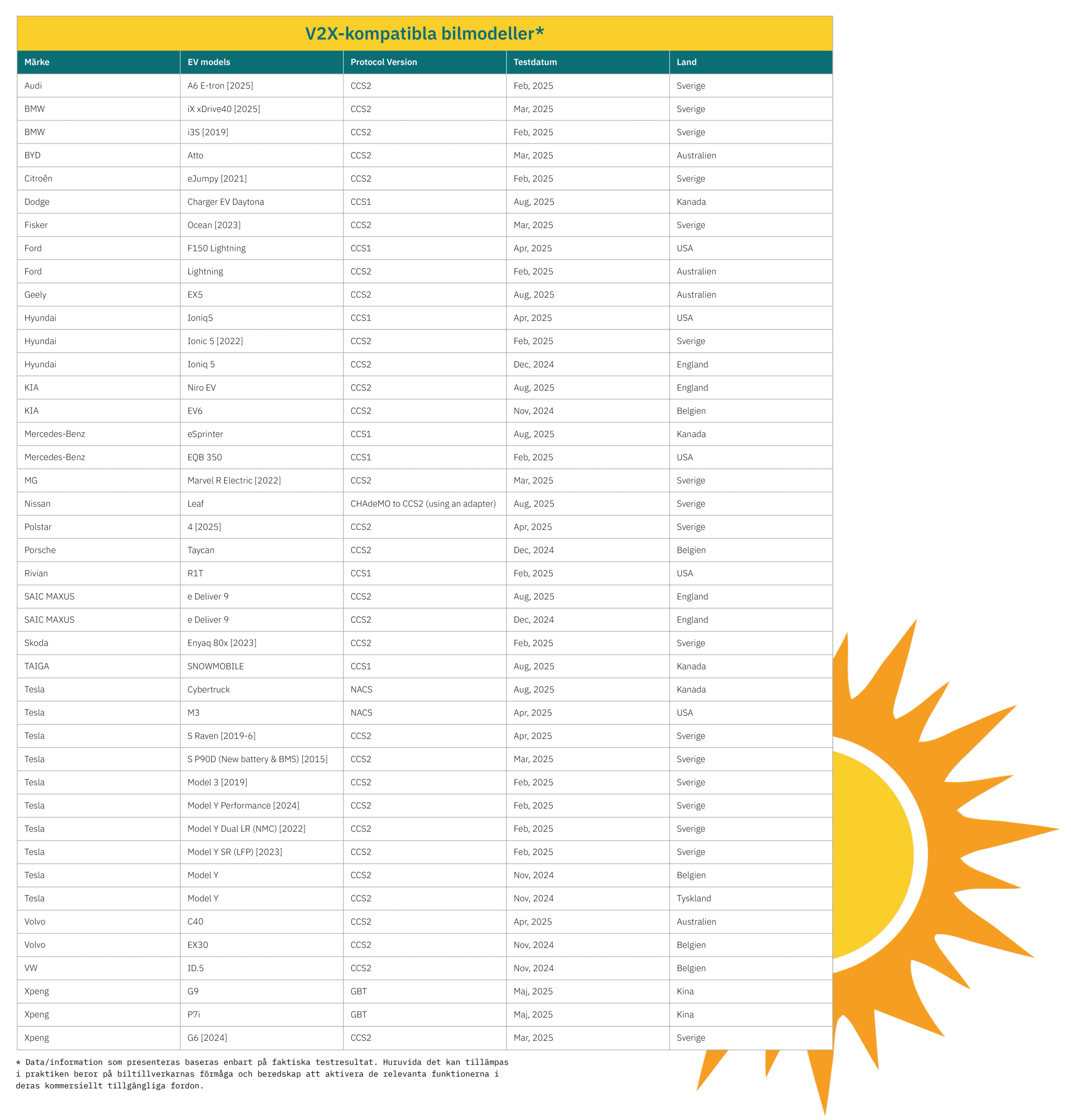 V2X (Vehicle-to-Everything) gör det möjligt att använda elbilen som ett extra energilager för huset eller elnätet (V2H, V2G).